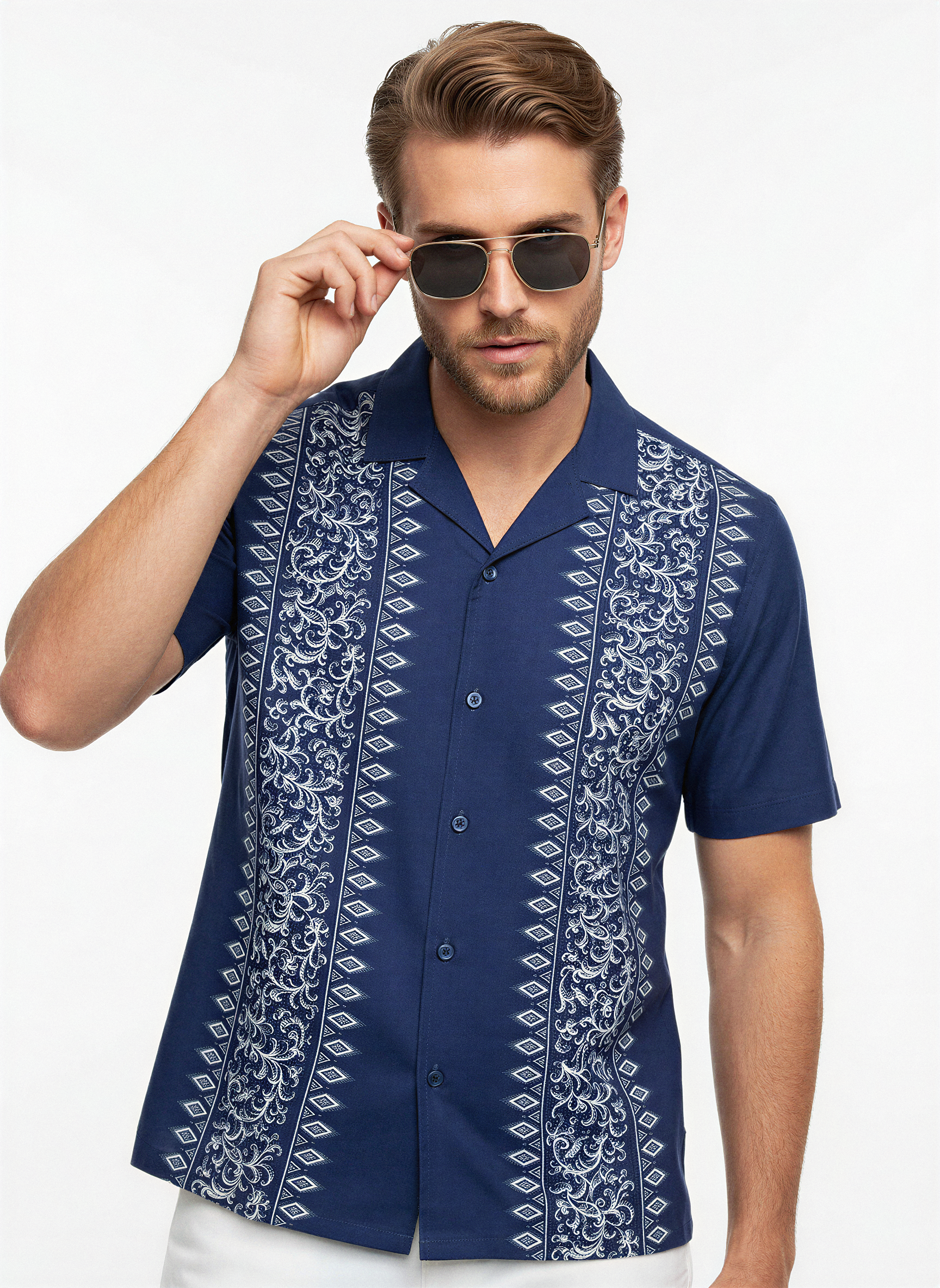 Navy blue greek inspired cuban shirt